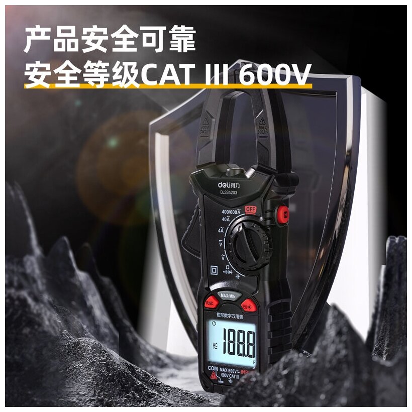 Deli Токоизмерительные клещи цифровыеDL334203 (раскрытие клещей 30мм, CAT III 600В, 600А, 40 мОм) 10 . интересное: