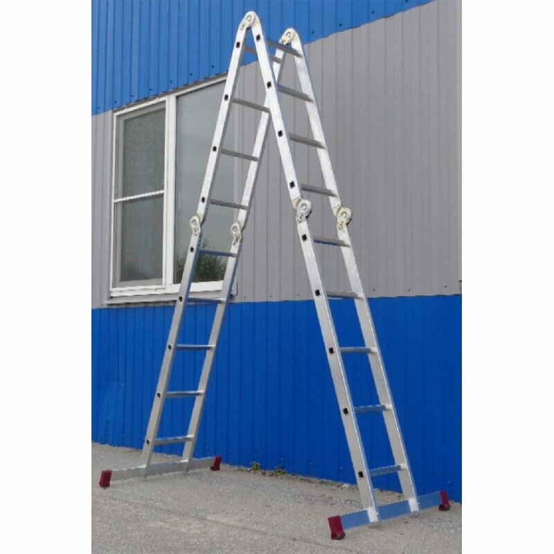 Новая высота Лестница-трансформер 3-х секционная 3×7 ступеней, 3×1,9 м, высота 4,5 м, нагрузка 150 кг, алюминий, новая высота