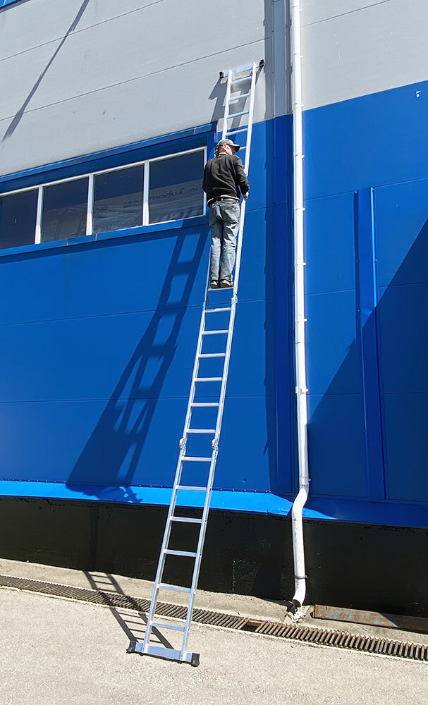 Новая высота Лестница-трансформер 3-х секционная 3×7 ступеней, 3×1,9 м, высота 4,5 м, нагрузка 150 кг, алюминий, новая высота
