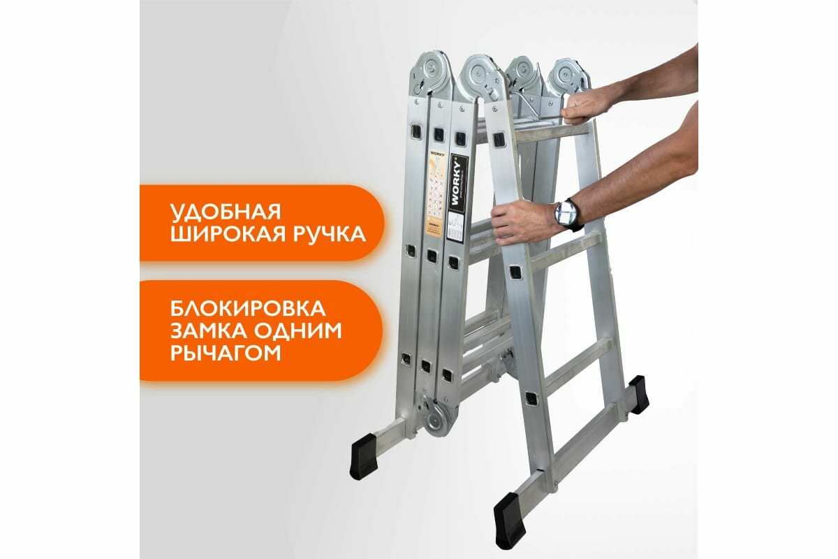 Лестница-стремянка 4x4 трансформер WORKY profi с помостом ARD257726 интересное: