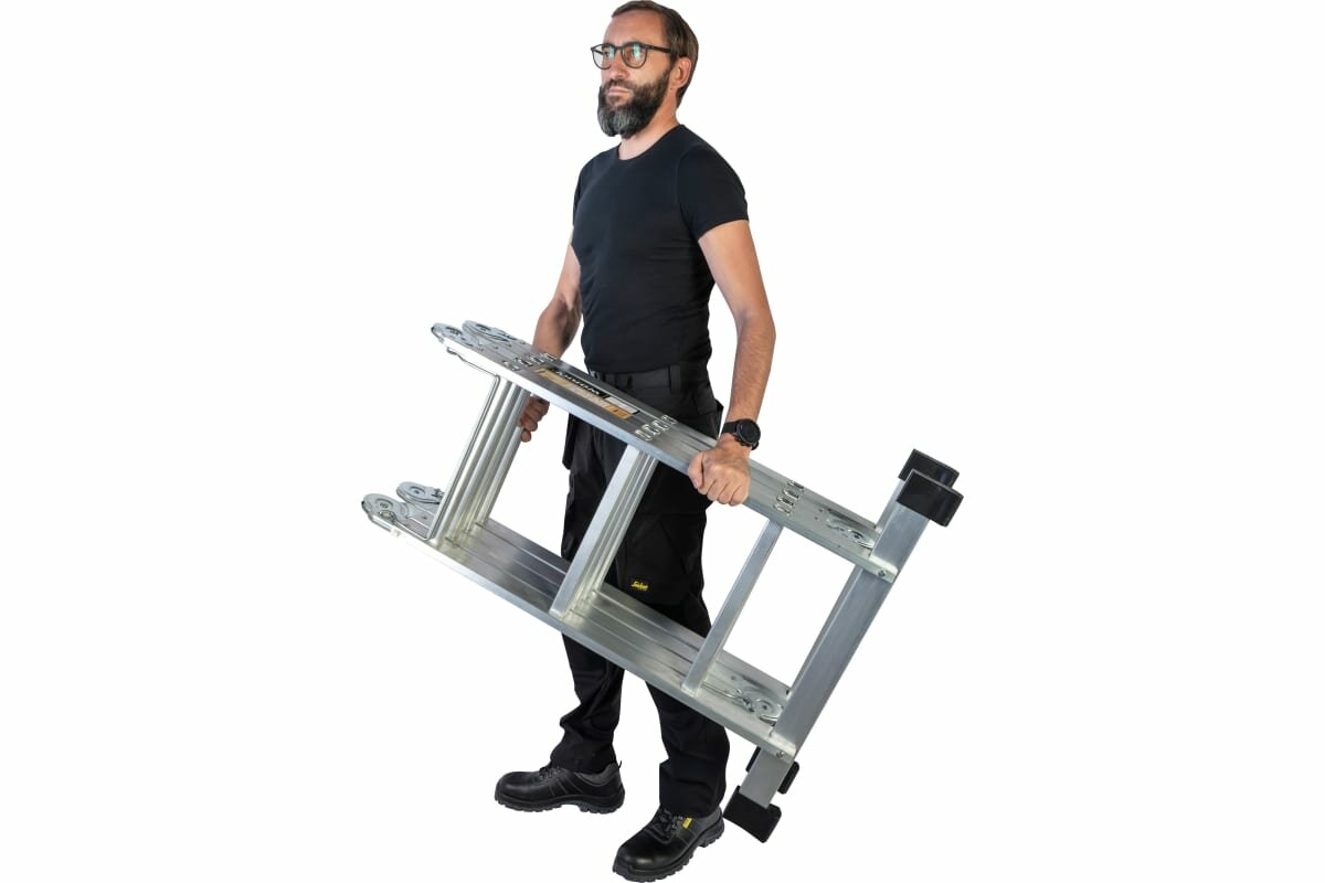 Новая высота Лестница-трансформер 3-х секционная 3×7 ступеней, 3×1,9 м, высота 4,5 м, нагрузка 150 кг, алюминий, новая высота
