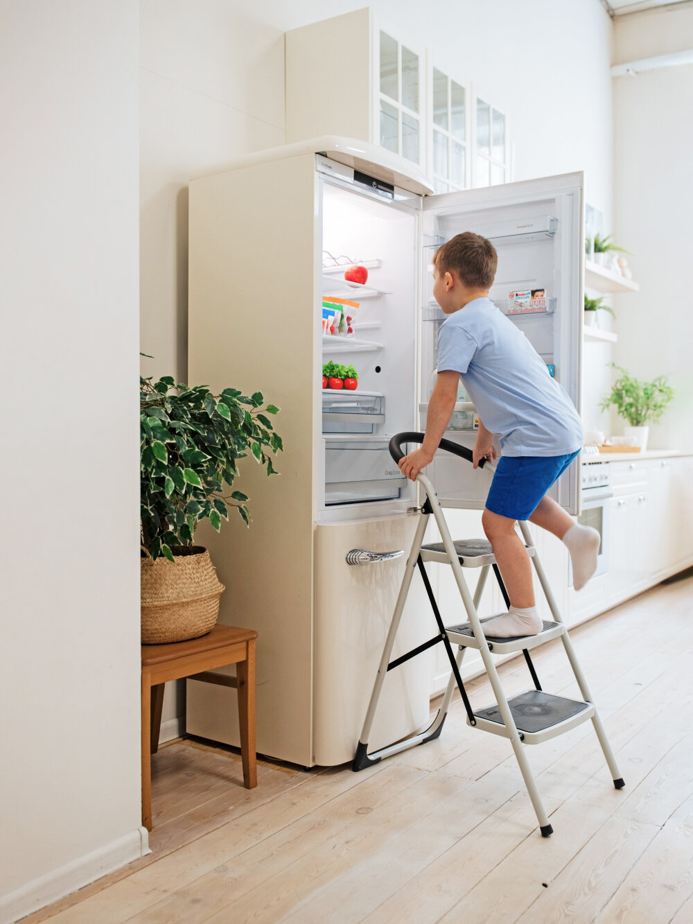 | Плюсы: | Устойчивая лестница для того, чтобы добраться до верхних полок шкафа. Ступеньки не скользят |