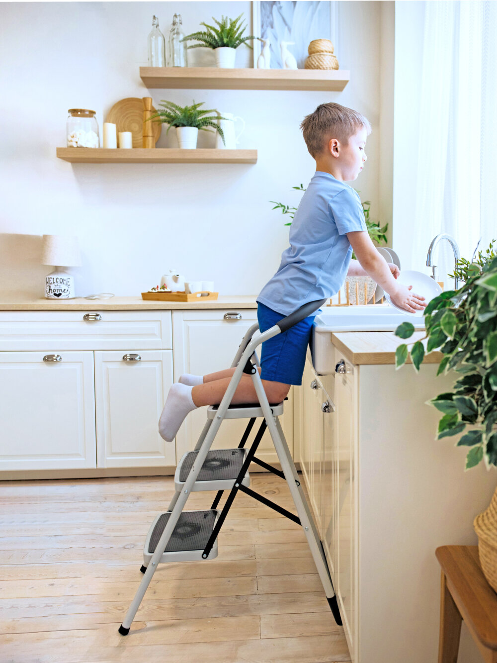 эта модель стремянки очень удобная широкими ступенями. и можно использовать в качестве барного стула |