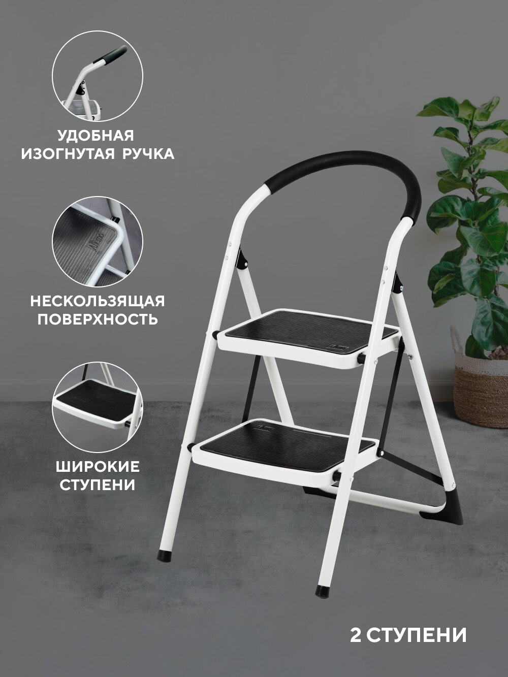 Купить Стремянка 2-х ступенчатая усиленная. С широкими антискользящими ступенями. Макс нагрузка 150 кг.