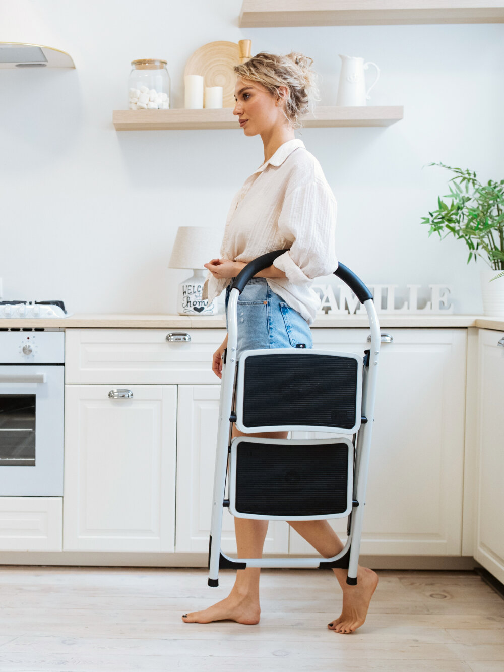 | Отзыв: | Удобная лестница, использую на кухне, чтобы достать что-то с верхних ящиков. А также очень удобно в гардеробной. |
