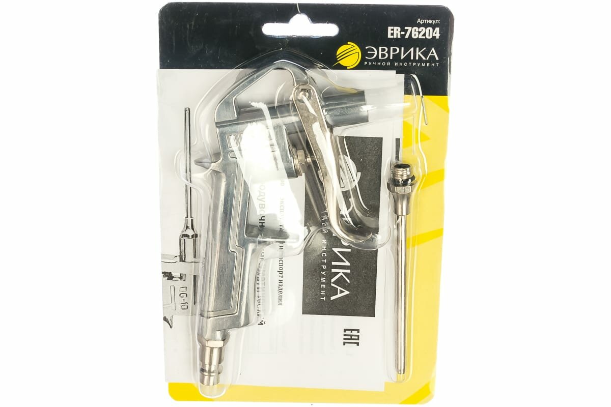 Купить Пистолет продувочный ER-76204 пневматический (насадка 9,5см входное отверстие1/4 максимальное давление 6 АТМ расход воздуха 145 л/мин.) эврика
