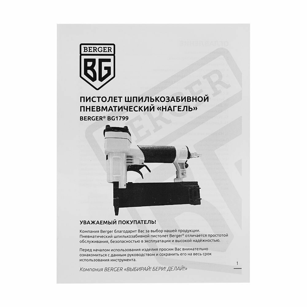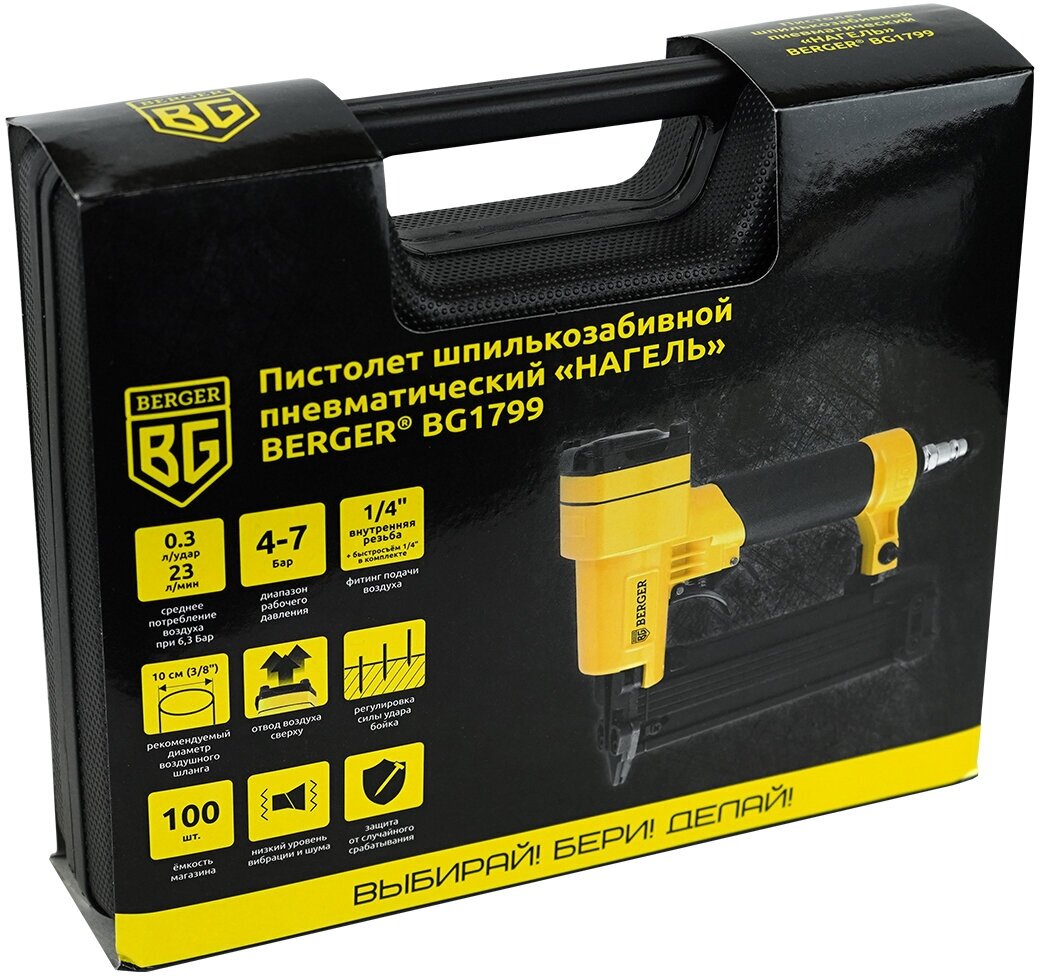 Пистолет шпилькозабивной пневматический «нагель» BERGER BG1799 интересное: