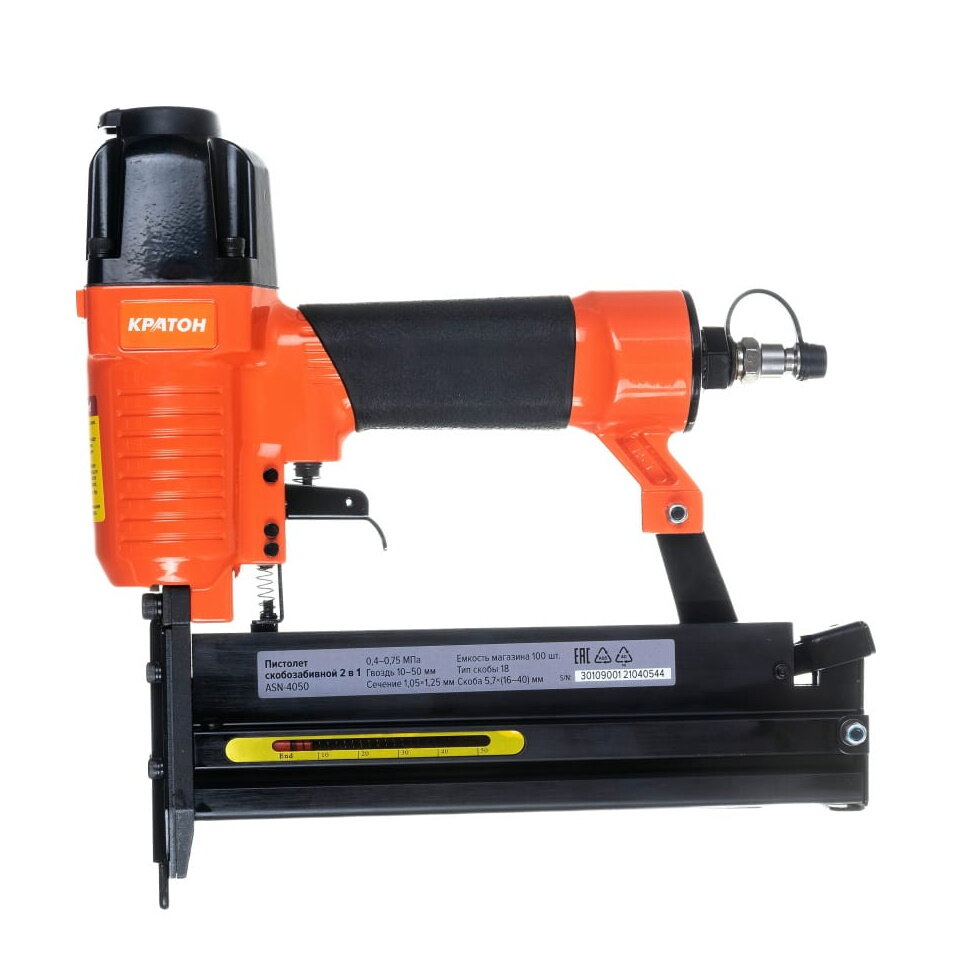 Пистолет скобозабивной 2 в 1 кратон ASN-4050, гвоздь 15-50мм, скоба 16-40мм, 25л/м. интересное: