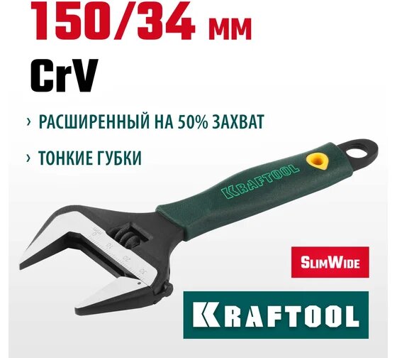 Ключ разводной SlimWide, 150 / 34 мм, KRAFTOOL