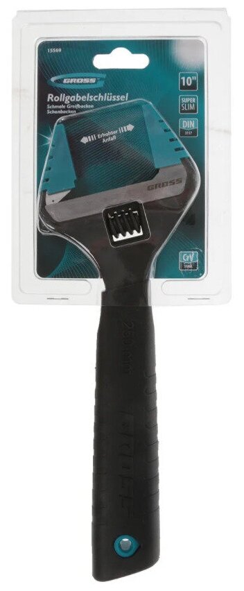 Ключ разводной, 250 мм 15569 , CrV, тонкие губки, защитные насадки Gross