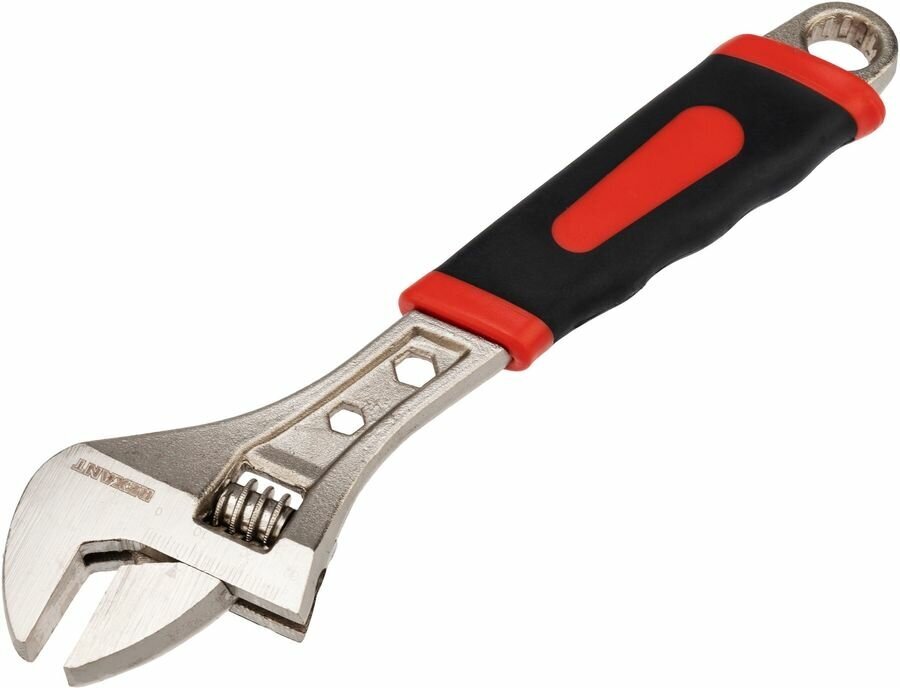Разводной ключ Rexant 250 мм никелированный с двухкомпонентной рукояткой .