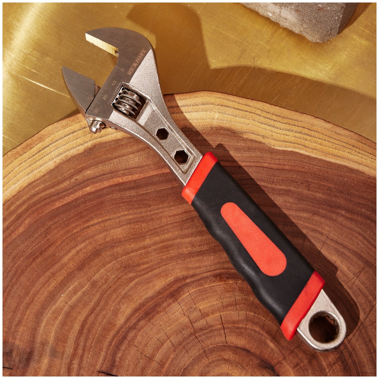 Разводной ключ REXANT 250 мм никелированный, двухкомпонентная рукоятка интересное: