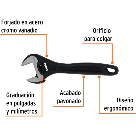 Разводной ключ профессиональный Truper PET-8 15501, 8" интересное: