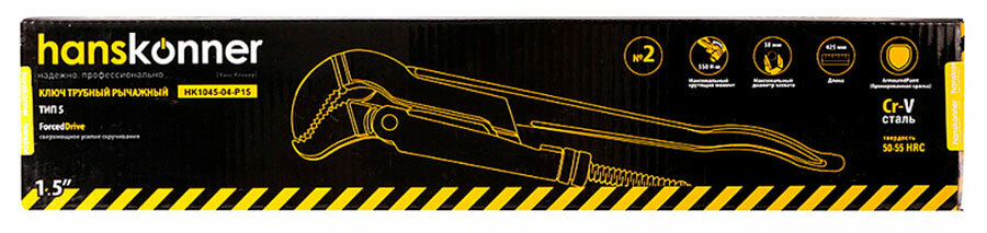 Ключ трубный рычажный Hanskonner HK1045-04-P15, 1,5", №2, 400 мм