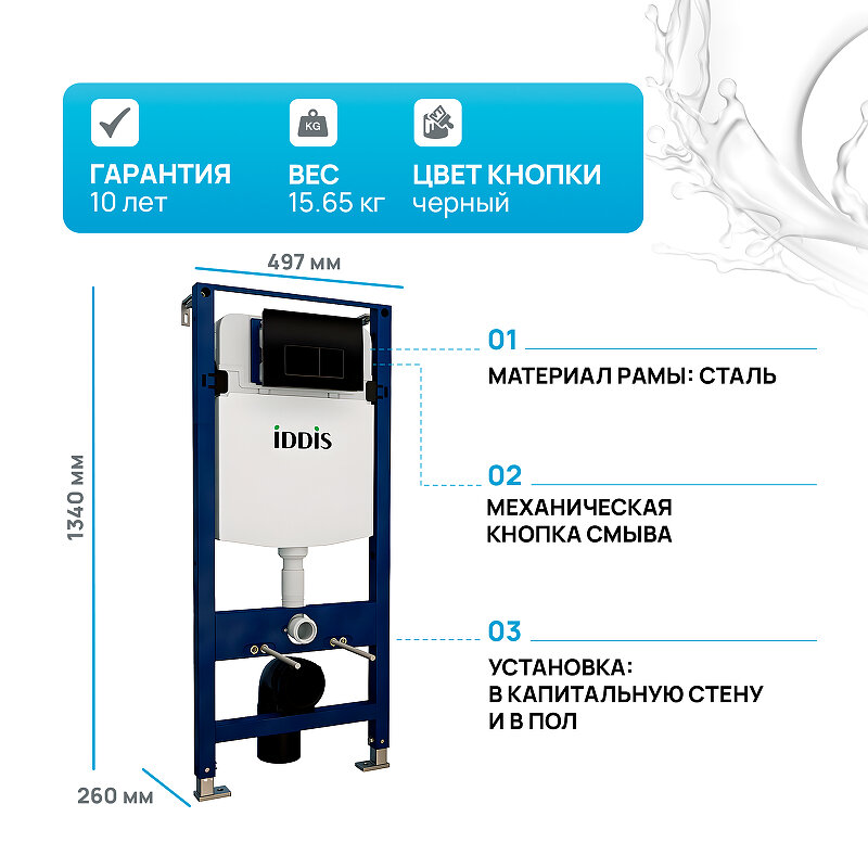 Купить Комплект 2 в 1: инсталляция и клавиша смыва Iddis Optima Home (OPH00MBi32K (клавиша OPH10B0i77))