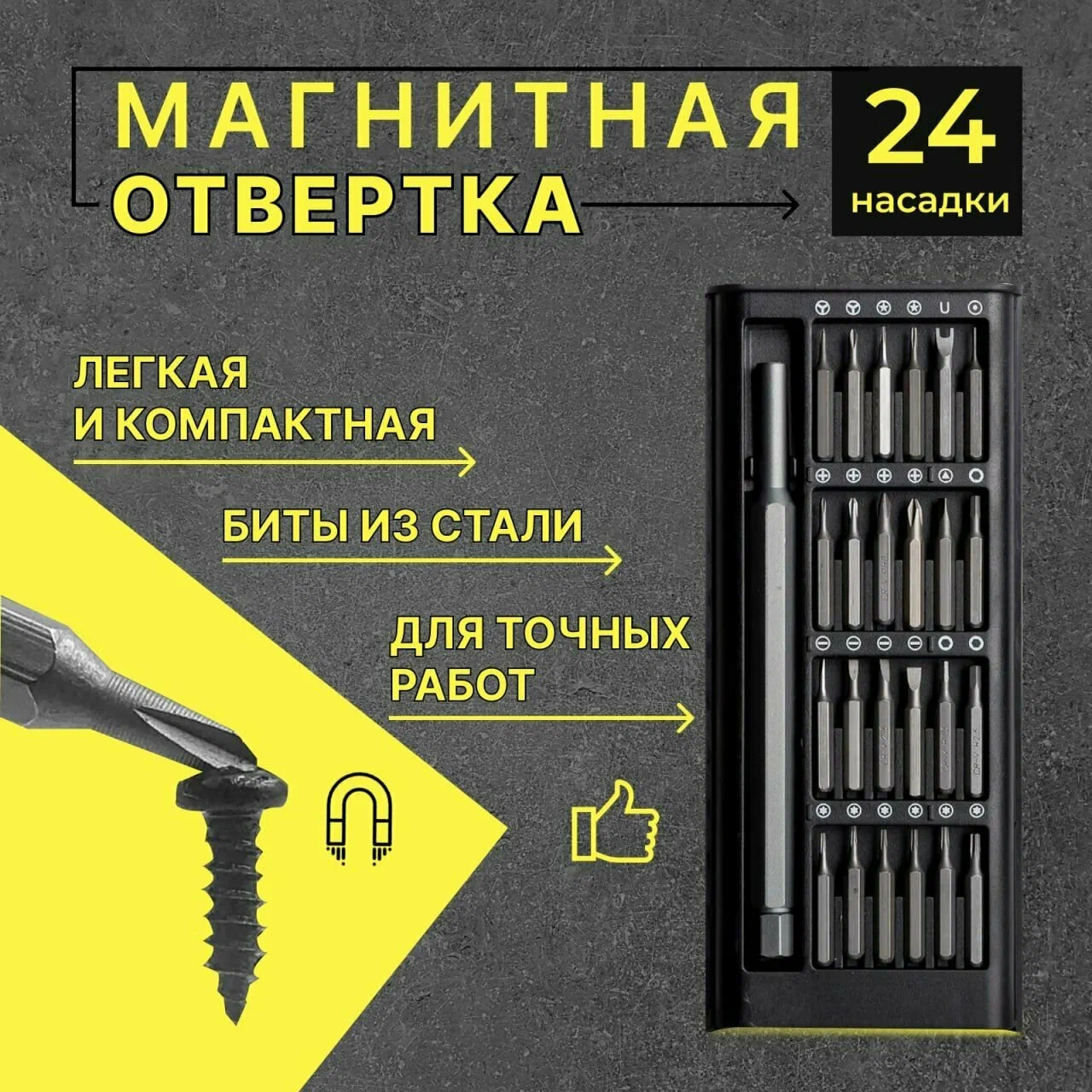 Магнитные отвёртки для точных работ, Набор 24 в 1 с битами, Отвертки набор для точных работ с набором сменных бит