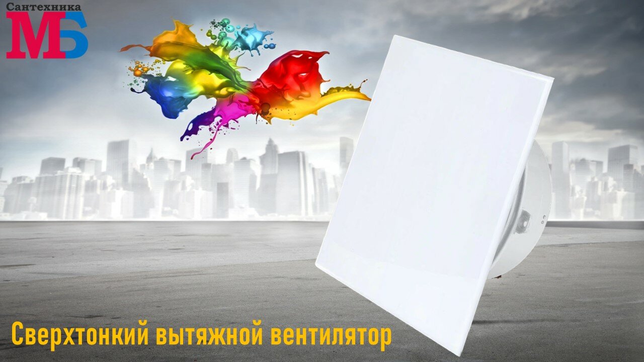 Вентилятор накладной ультра тонкий 37мм для ванной стекло Mmotors ММР 100/90м3/ч, Белый матовый