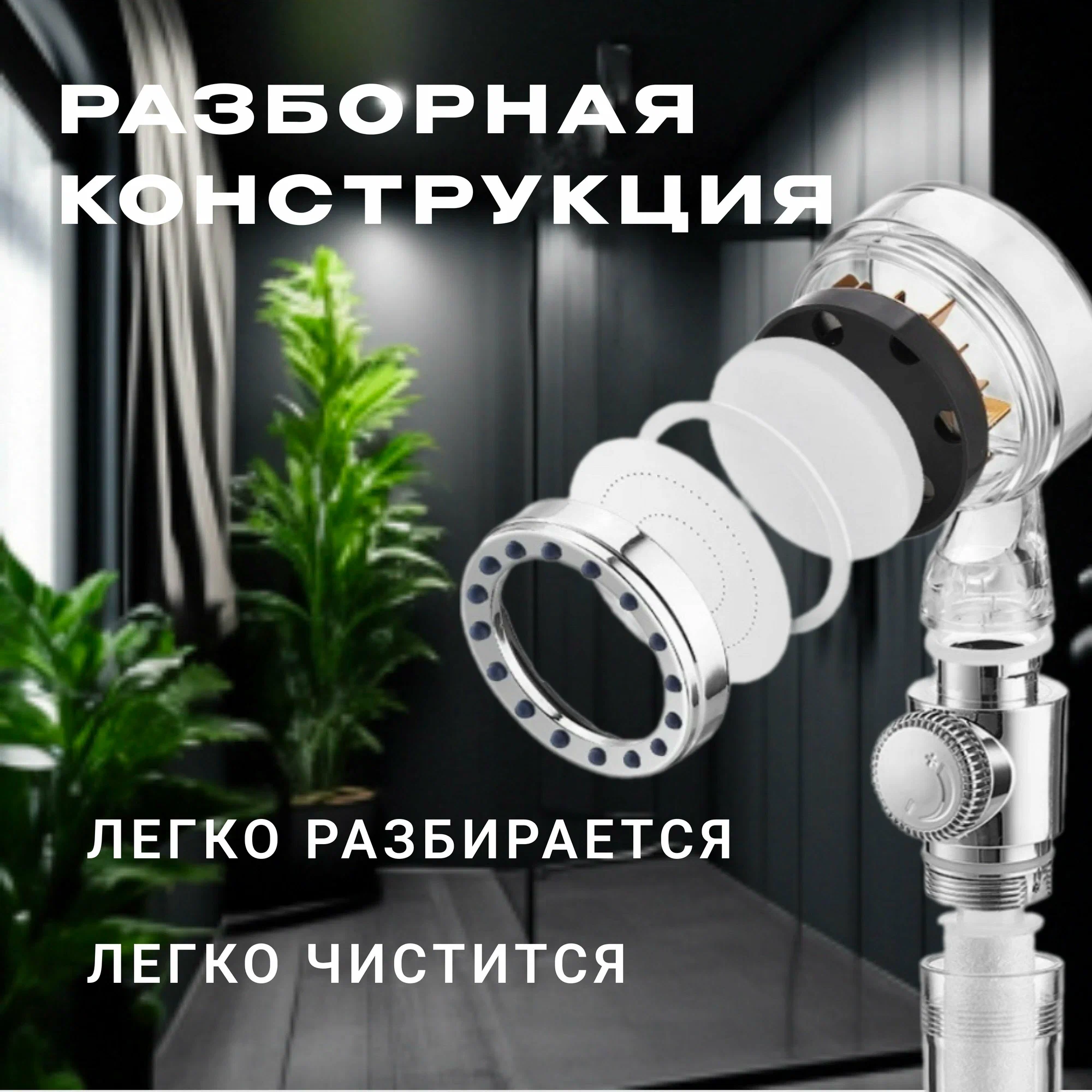 | Минусы: | Если у вас жесткая вода, то отверстия зарастают осадком и в какой-то момент получается отличный душ Шарко. Нельзя выкинуть кнопку из состава лейки. |