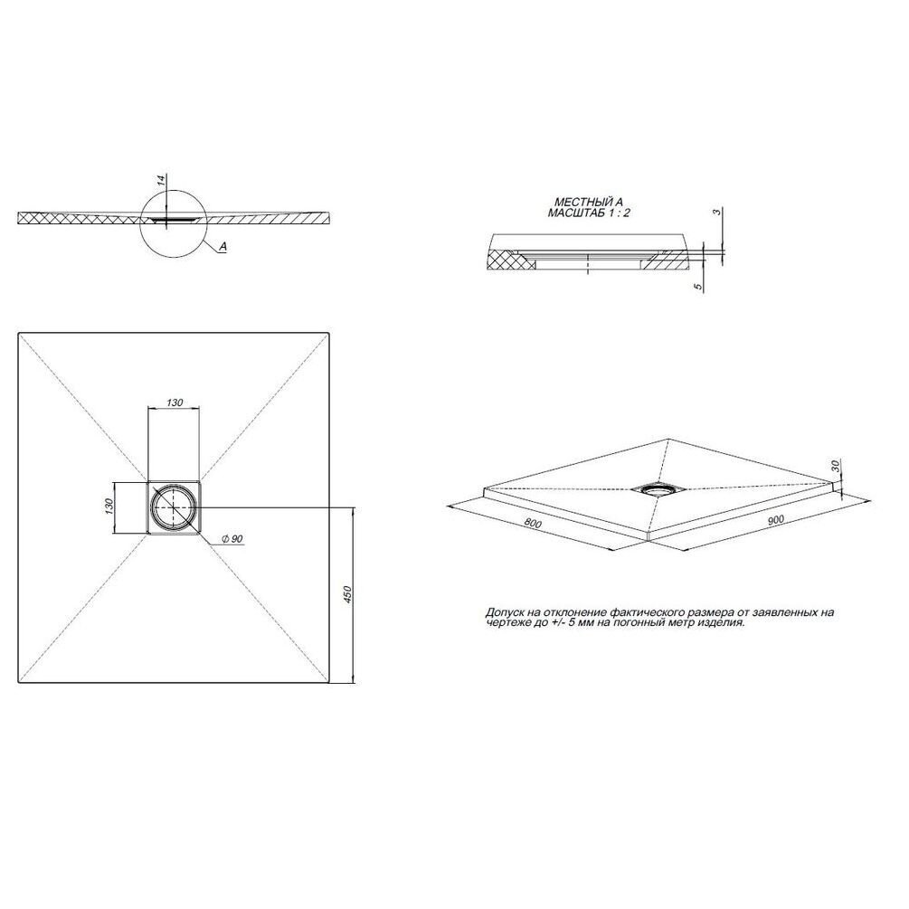 Душевой поддон акриловый белый 90х90см Damixa DX35WT-405-090MT