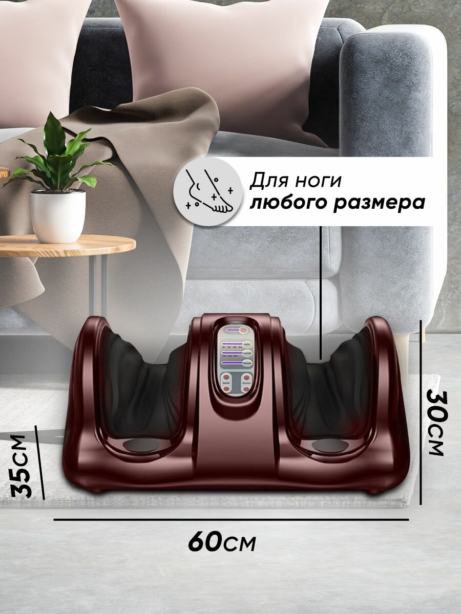Массажер для ног, стоп, рук и икр электрический Classmark Шиацу с пультом ДУ, выбор зоны массажа, 4 автоматических программы, регулировка скорости и интенсивности / вибромассажер, бордовый