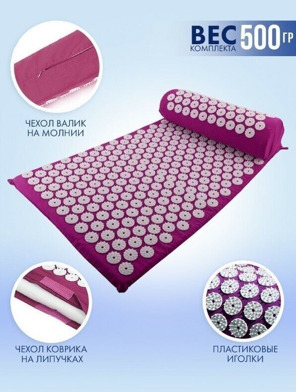 Аппликатор Кузнецова - массажный акупунктурный коврик для ног и валик в чехле (синий)