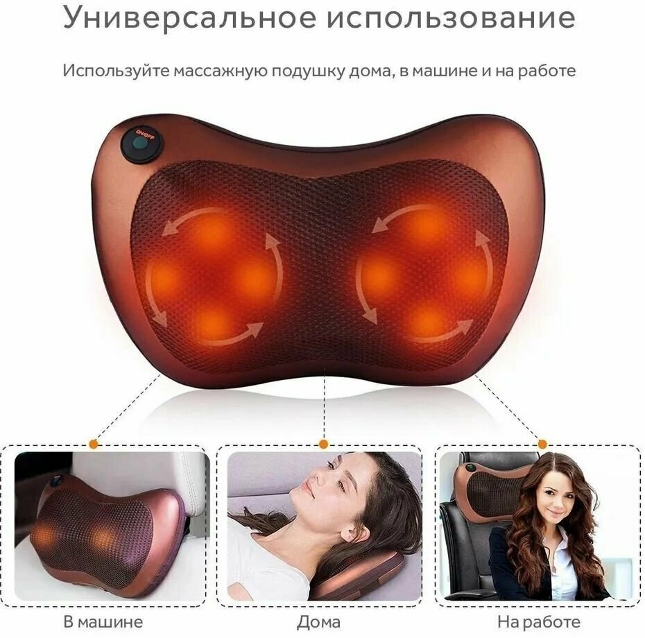 Массажная подушка 8-роликов, 3 режима массажа с подогревом. интересное: