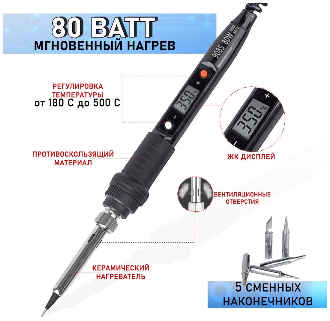 Паяльник керамический 80 Ватт / Электрический паяльник 80 W / Мощность 80 Вт интересное: