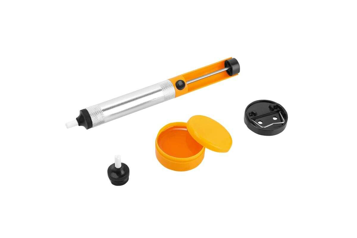 | Комплектация | 1шт. паяльник 1 шт. подставка под паяльник 1 шт. экстрактор припоя 1 шт. сменный наконечник экстрактора припоя 1 шт. канифоль 1 шт. припой спиралью 1 шт. бокорезы 1 шт. тонкогубцы |