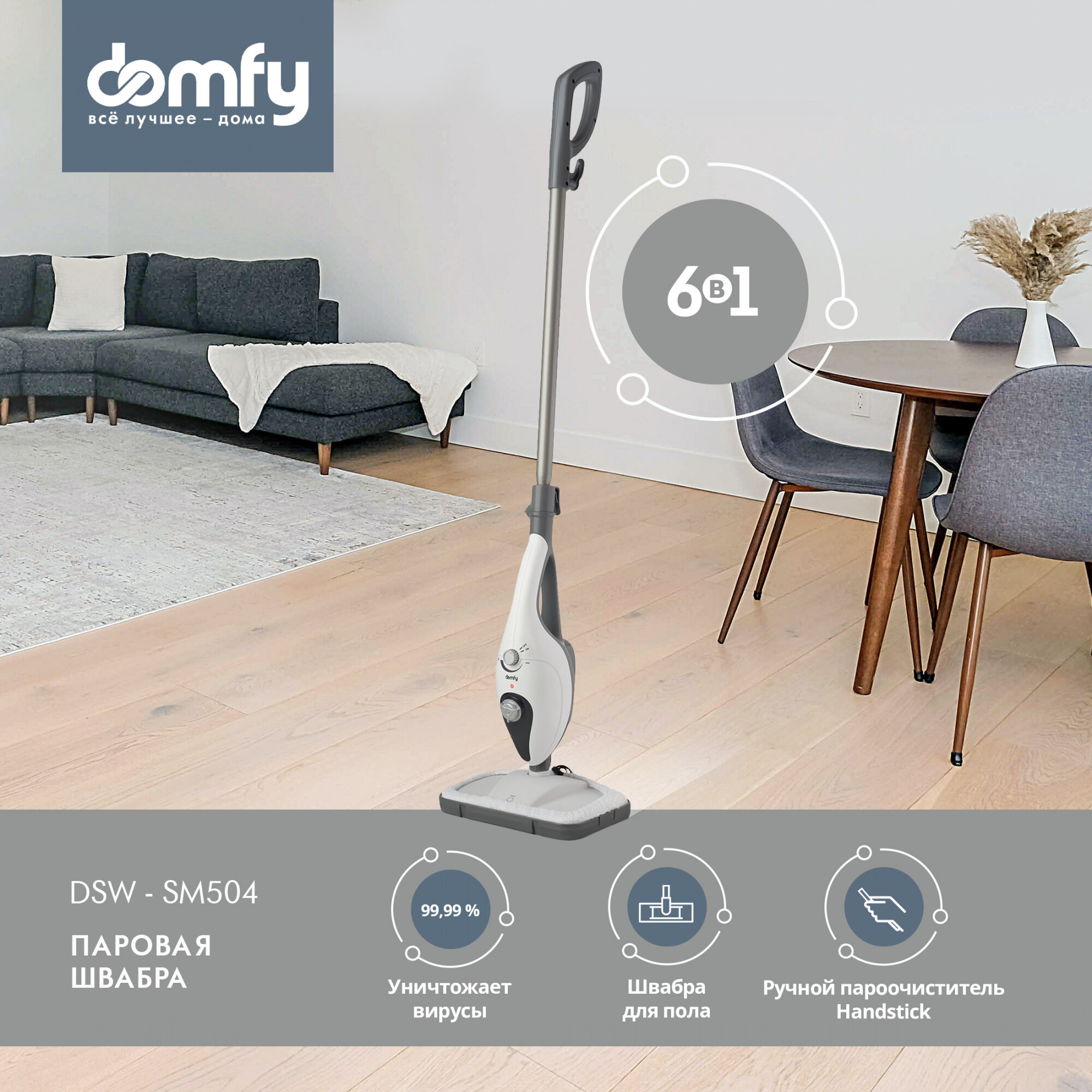 Швабра паровая Domfy DSW-SM504 1500Вт белый/серый интересное: