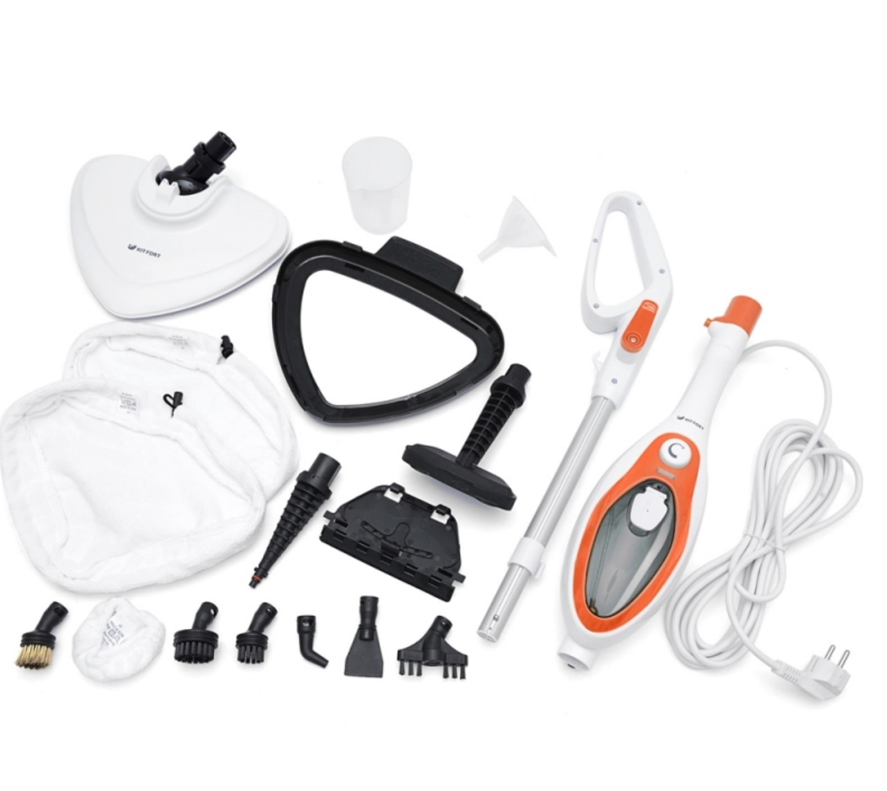 | Дополнительная информация | полная комплектация: щетка для пола, рамка для ковра, стакан для наливания воды, воронка, тряпка для пола - 2 шт., тряпка для отпаривания, круглая латунная щетка, большая и маленькая круглые нейлоновые щетки, угловая насадка, скребок, плоская ворсовая щетка, скребок для стекла, струйная насадка, насадка для отпаривания |