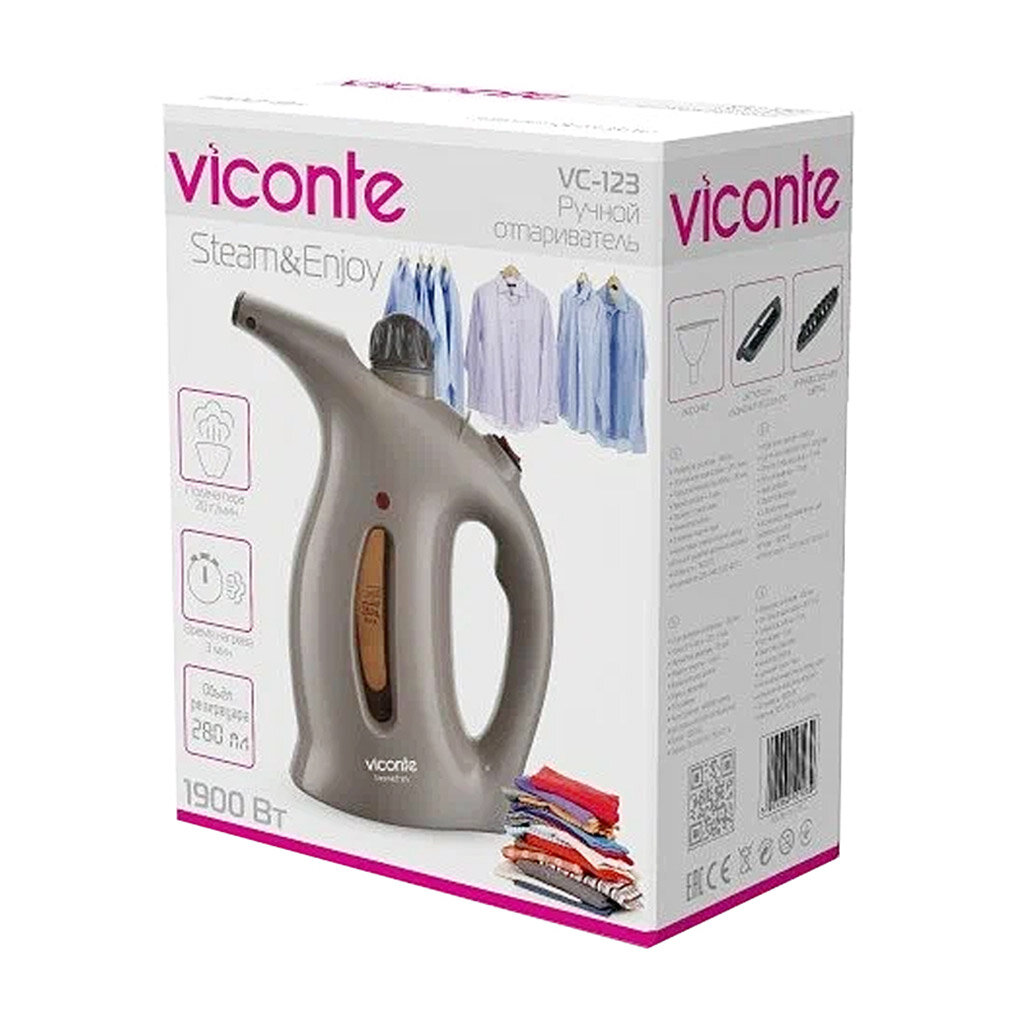 Отпариватель Viconte ручной 1750 Вт вертикальный дорожный гладильная система с насадками