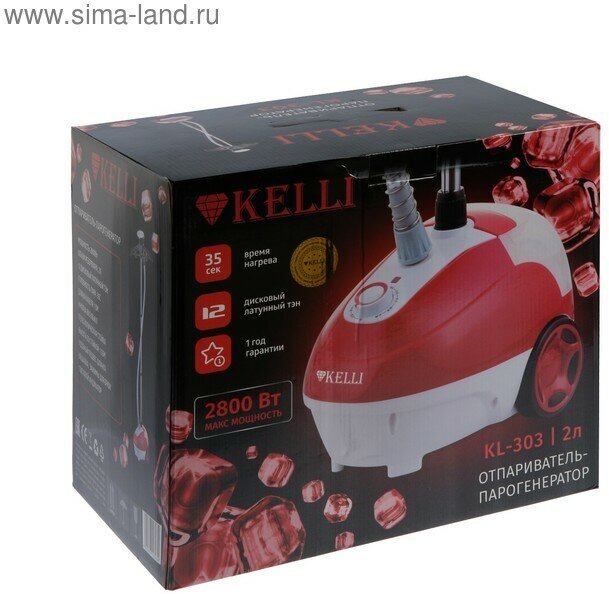 Отпариватель KELLI KL-303 2л, 2800 Вт, красный/белый