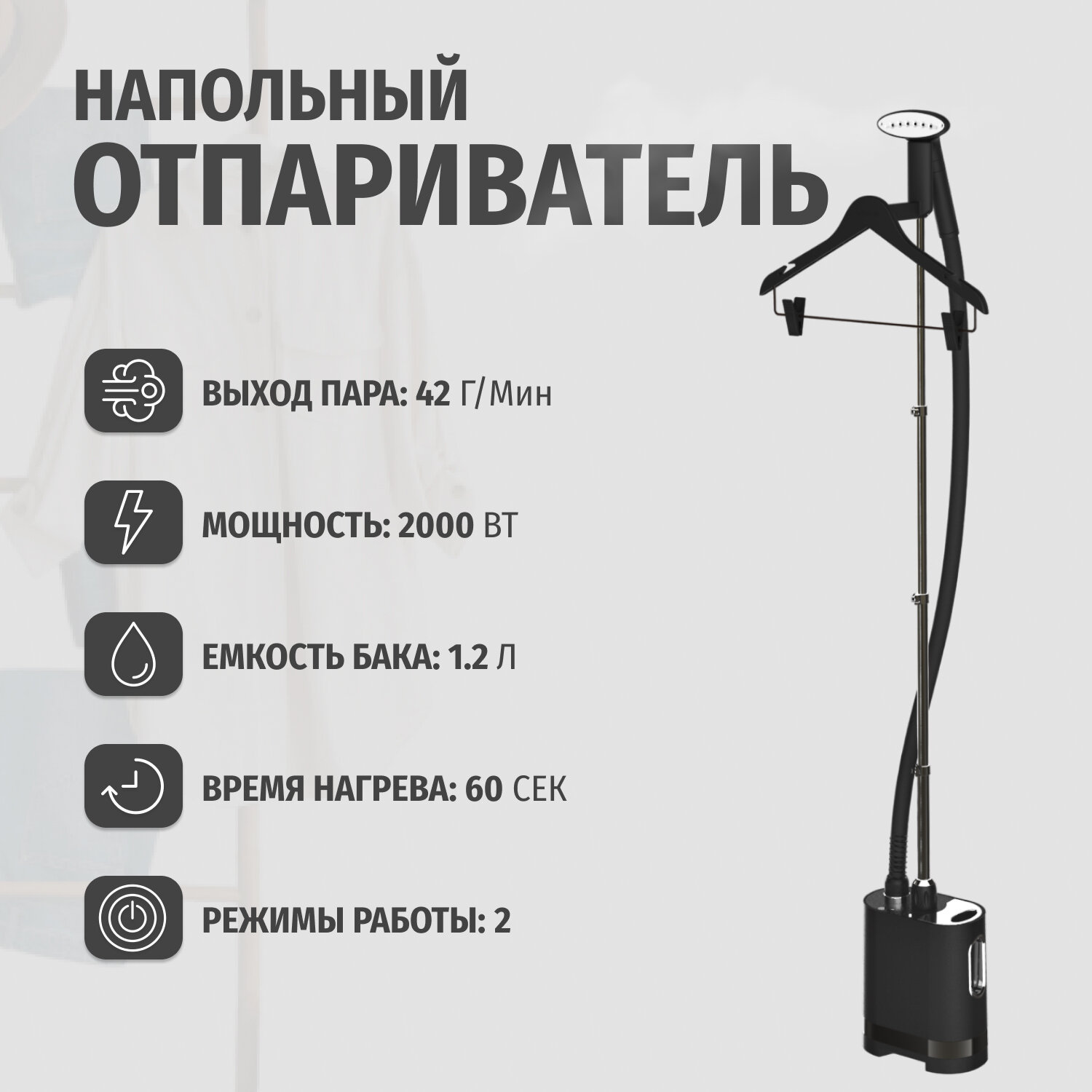 Напольный отпариватель. Упакован нормально. Собран по первому впечатлению хорошо, качество материалов нормальное. Выглядит аккуратно, я держу его в гардеробной. В комплекте насадка для сбора ворса с одежды, досточка для удобства разглаживания рукавов и воротников, вешалка, перчатка. Легко собирается, съемный контейнер, легко наполнить водой, вместимость 1200 милилитров, остаток можно слить после остывания (по рекомендациям производителей - занимает 2 часа), если не планируете использовать в ближайшие несколько дней. Рекомендую лично от себя сливать. У отпаривателя 2 режима работы (мощность поменьше и побольше), сигнализирует об окончании жидкости, есть самоотключение, оснащен инфракрасными датчиками, т.е. если повесили на крючок, пар не пойдет, пока какое-либо движение не будет зафиксировано датчиками. Удобно и приятно держать в руке. Жженным пластиком не пахнет. Отпаривает хорошо, я даже могу сказать отлично. Все удовлетворило.