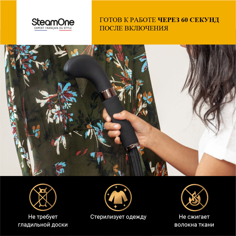 отлично работает на любых тканях, подавая мощный пар и разглаживая складки даже на тончайших и деликатных материалах, и точно так же на плотных тканях, даже полушерстяное пальто