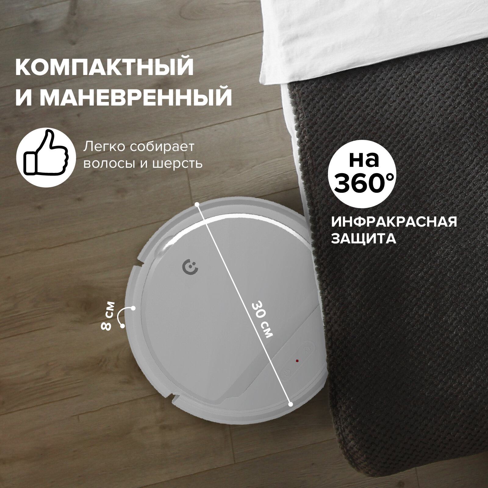 Купили в двухкомнатную квартиру данный робот пылесос! В принципе за такую цену мне понравился, нормально он пылесосит(конечно у меня домашних животных нет), но пылинки и небольшие фрагменты грязи, крошек всасывает, мало было моментов где он тупил или не выполнял свои функции. Отмечу так же, что достаточно тихо работает, да и выглядит прикольно. Что касается настройки, то проблем не составило, приложение скачала установила и сделала всё по инструкции.