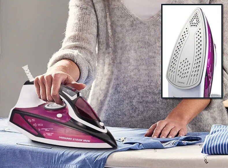 Утюг домашний электрический проводной,для одежды,с функцией вертикальной глажки,паровой утюг,2400Вт,утюг,для дома,фиолетовый интересное: