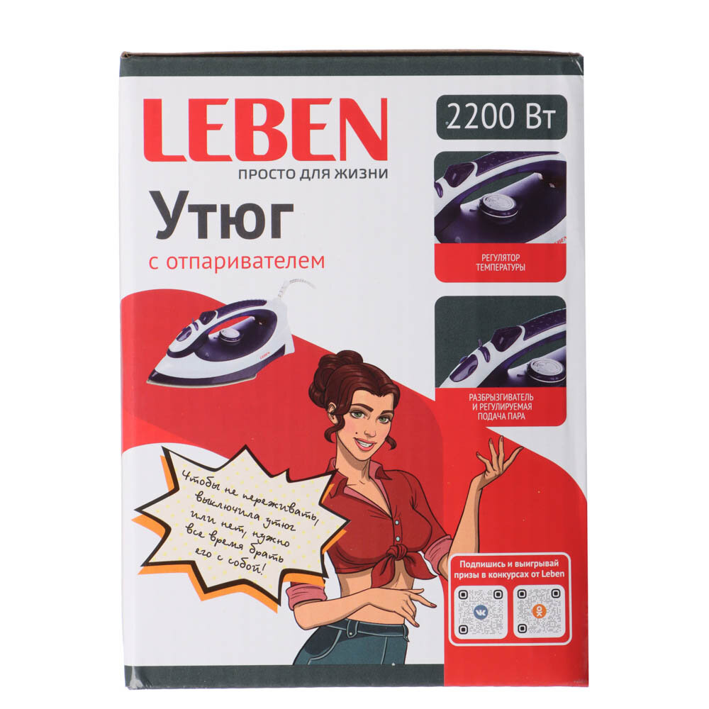 LEBEN Утюг с отпаривателем 2200 Вт, подошва - керамическое покрытие, ES-2098