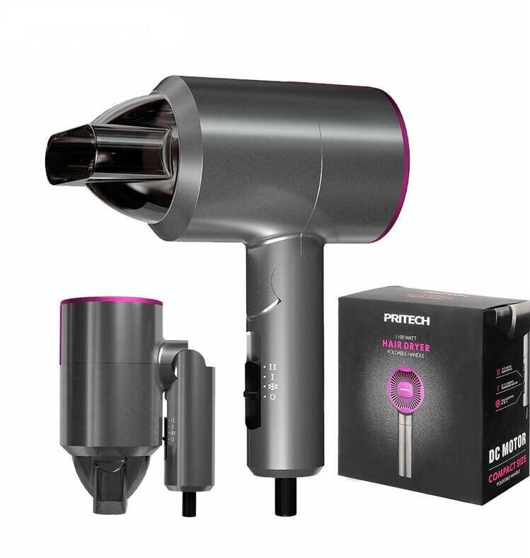 Фен / Дорожный фен со складной ручкой / Фен для волос c 3 режимами работы, насадкой концентратором, 1100 Вт интересное: