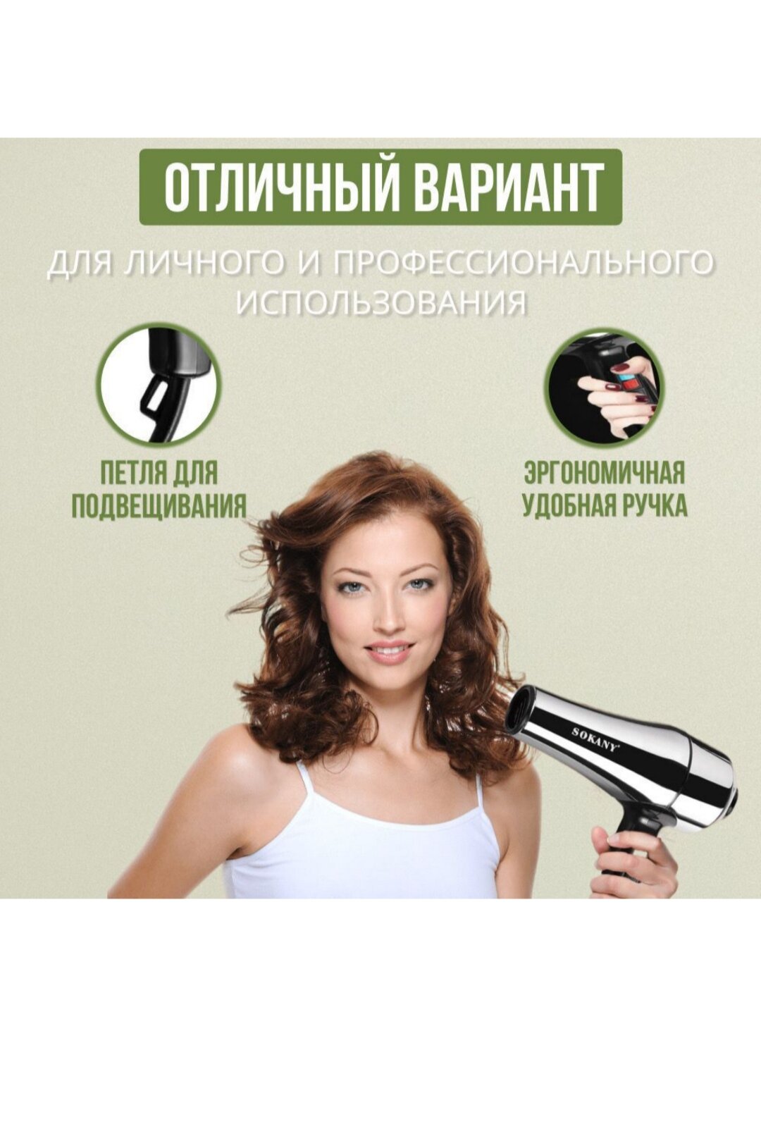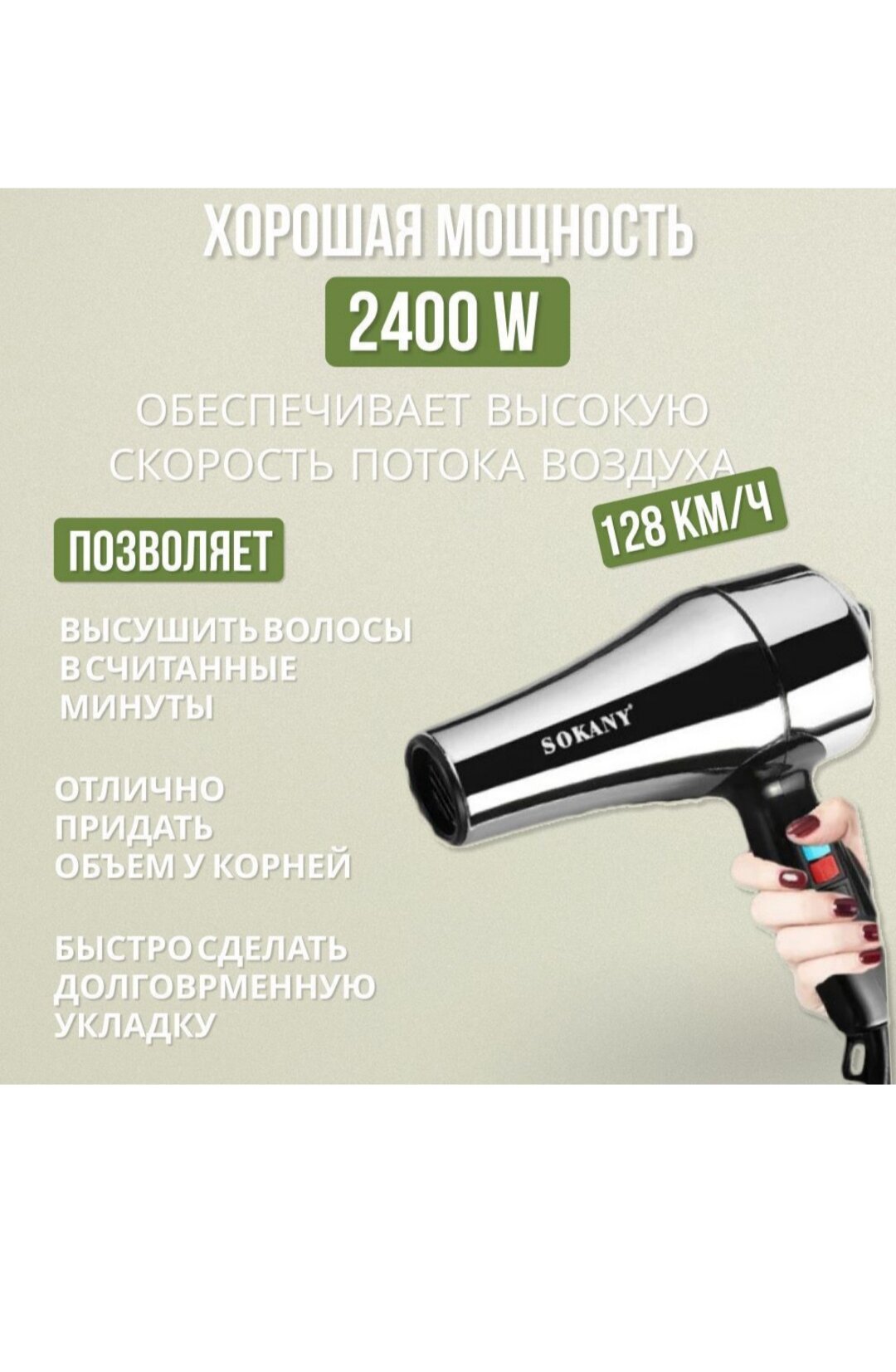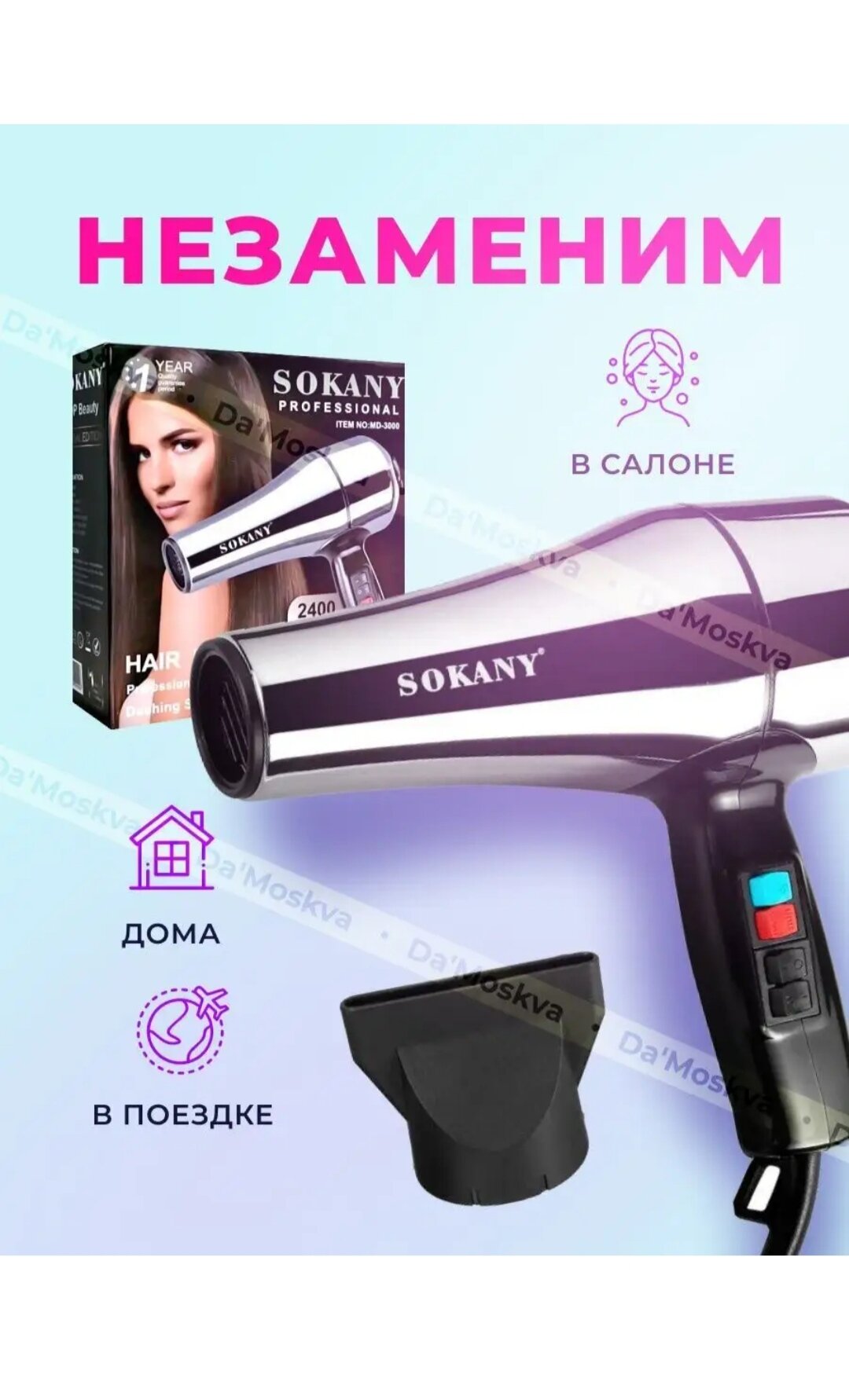 Профессиональный супермощный фен для волос с насадками и ионизацией GORGEOUS HAIR/Эффект быстрой сушки /Мощность 2400 Вт/Sokany MD-3000