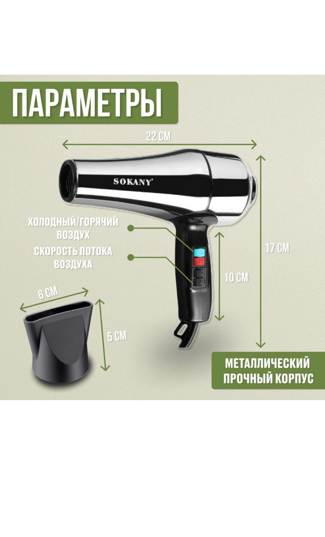 Фен для волос SOKANY MD-3000 /Серый металлик / Серебристый