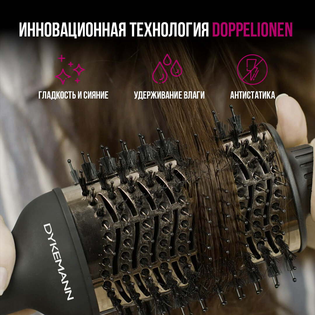 Фен-щетка Dykemann Burste W-12/Фен для укладки волос/Щетка для волос /Овальная щетка для волос/Фен с ионизацией/ 4 в 1 интересное: