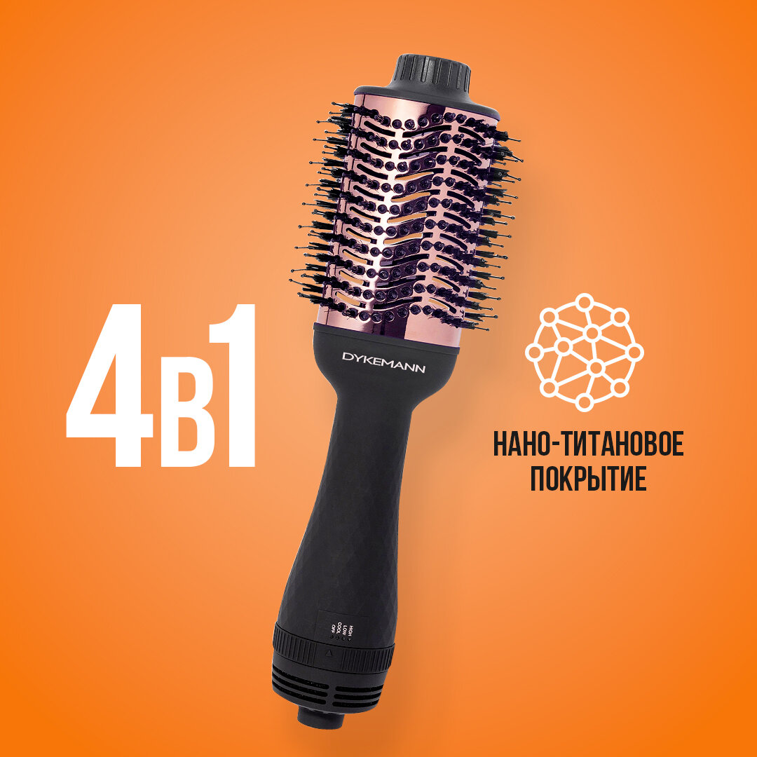 Купить Фен-щетка Dykemann Burste W-12/Фен для укладки волос/Щетка для волос /Овальная щетка для волос/Фен с ионизацией/ 4 в 1
