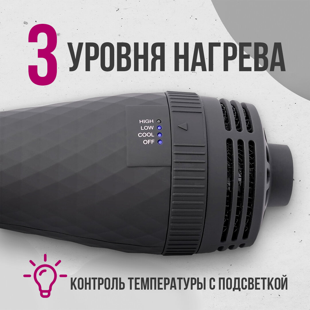 4 в 1.Делаю шикарный объем за 7 минут.И волосы высушила и укладку сделала. В руке лежит удобно, рука не устает.Нагревается быстро, но при этом не наносит никакого вреда |