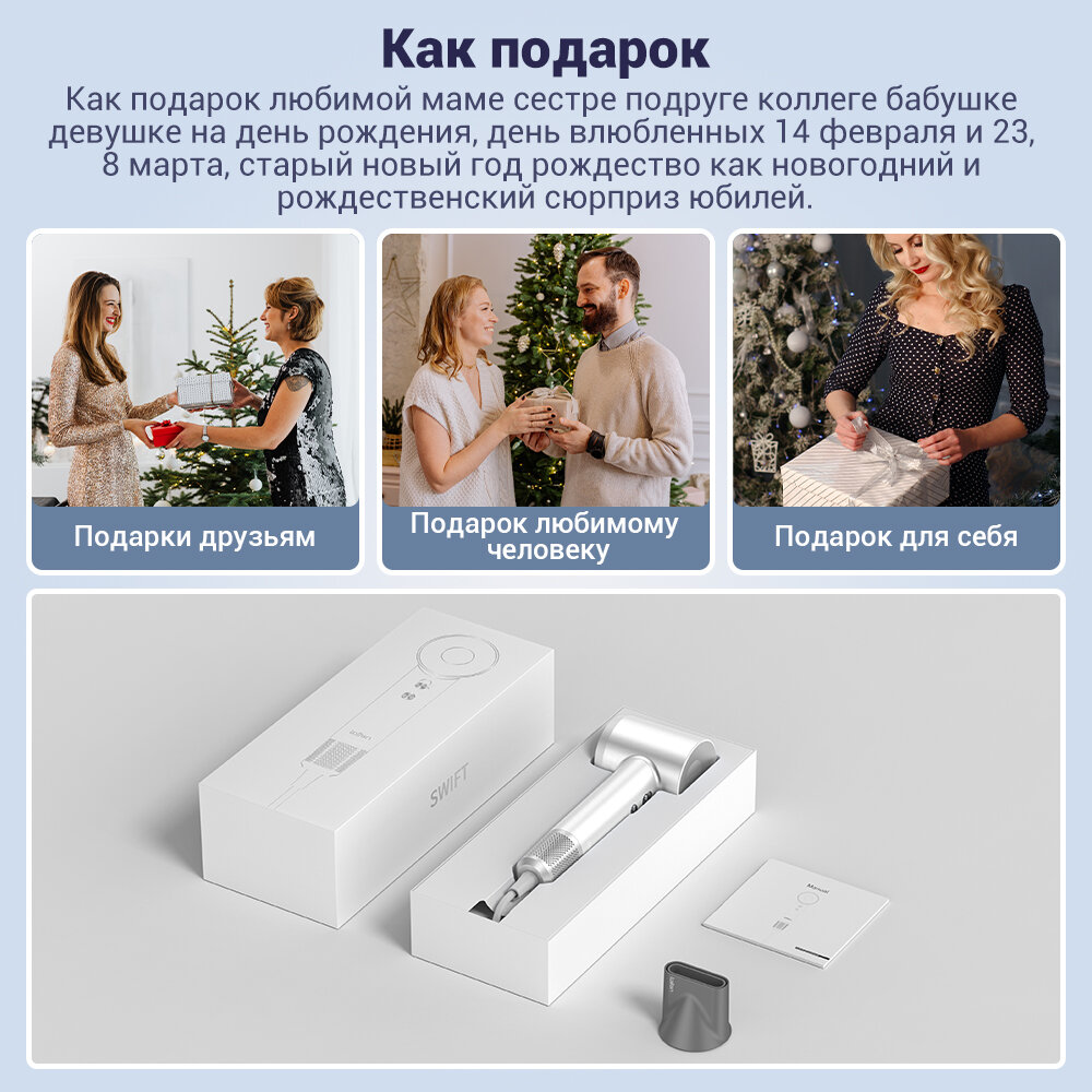 Фен для волос Laifen SWIFT с технология шумоподавления, 59 дБ, белый