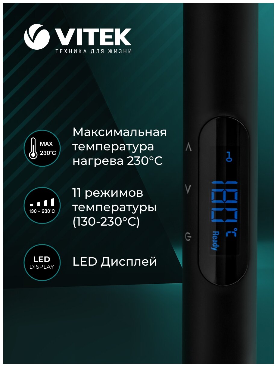 Выпрямитель для волос Vitek VT-1335, 58 Вт, 230С, черный/зеленый