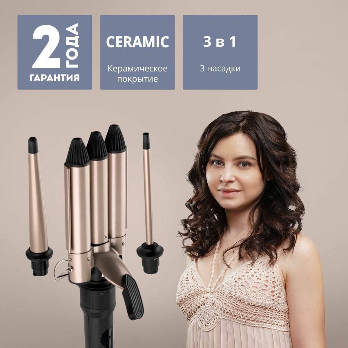 Плойка тройная керамическая для укладки волос с режимами температуры INFINITIPRO GM-45W/25мм