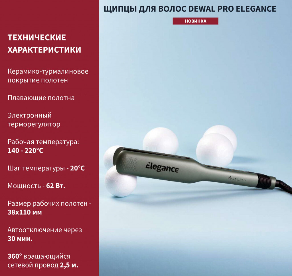 Щипцы для выпрямления волос DEWAL PRO ELEGANCE, 38х110мм, с терморег, керам-турмалин покр, 62Вт 03-413 интересное: