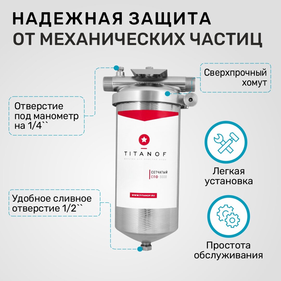 Сетчатый механический фильтр TITANOF - СПФ 3000 5 микрон (3000 л/ч) интересное:
