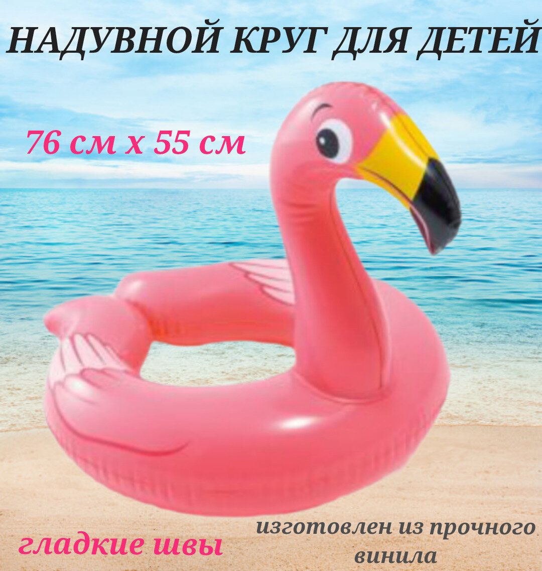 Надувной круг фламинго, детский круг 76 см х 55 см, круг розовый фламинго 59220, яркий круг, разъемный надувной круг, круг для детей интересное: