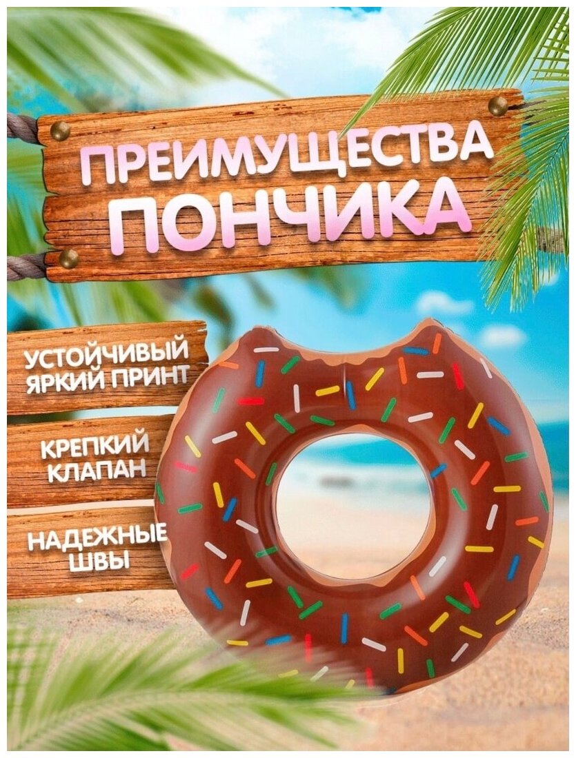 Круг надувной пончик розовый диаметр 80 см/Плавательный круг/Круг в виде пончика /Пляжный надувной круг для плавания/детский круг/пляжный круг интересное: